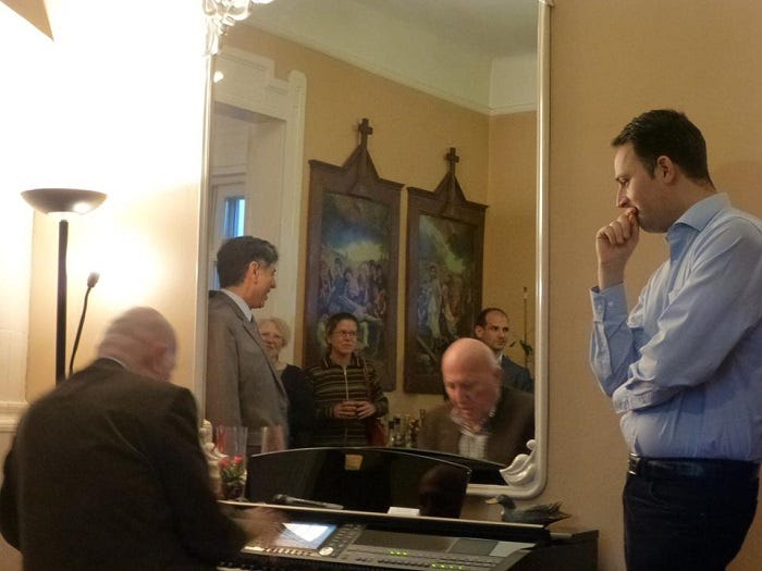 Nem tudtam, hová is megyek, ezért vittem magammal a kutyám és egy közepes árkategóriájú bort, mint rendes házibuliba szokás. Az ajtóban libériás inas fogadott pezsgővel a tálcáján. Ekkor éreztem, hogy ez inkább egy kultúrantropológiai élmény lesz, mintsem önfeledten laza házibuli. A nagytérbe belépve egy nagykövet zongorázott és egy fiatal lány énekelt hozzá Schubertet.