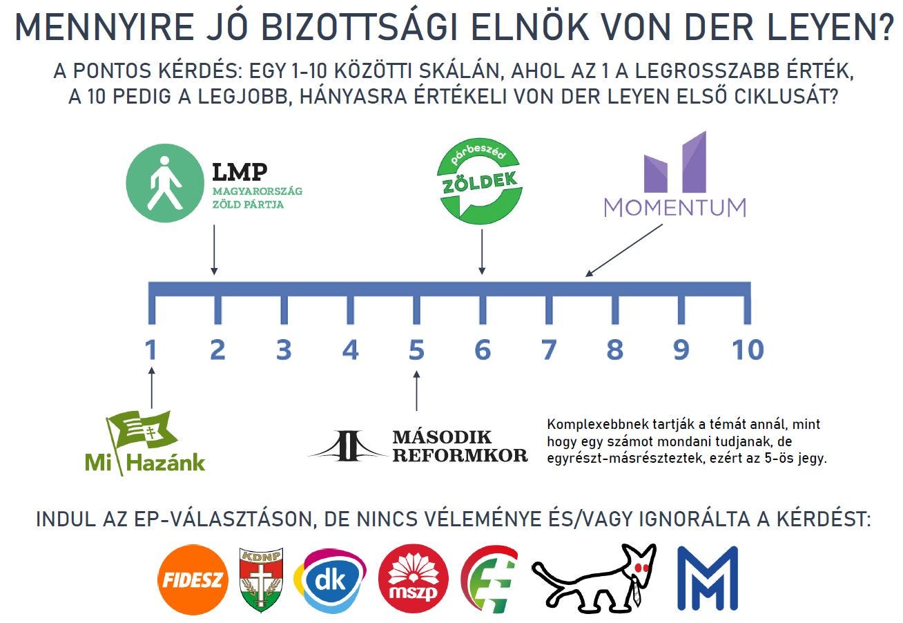 A napokban Balatonalmádiban frakcióülésező, valószínűleg inkább a belső feszültségek elsimításával elfoglalt Fideszről és a KDNP-ről nagyjából tudni lehet, hogy mi a véleményük (von der Leyen rossz), és talán a Demokratikus Koalícióét is sejteni véljük (ugyan nem a mi pártcsaládunk, de von der Leyen Brüsszelben született, tehát európai, tehát jó), ám hogy a Róna Péterrel erősítő Jobbik, az EP-mandátumesélyes Kutyapárt, az ellenzék 2022-es miniszterelnök-jelöltje által vezetett Mindenki Magyarországa Néppárt vagy épp a von der Leyenre 2019-ben nemet mondó Ujhelyi István nélküli MSZP mit gondol az EP-választást követően kiosztandó legfontosabb poszt újrázni kívánó aktuális betöltőjéről és teljesítményéről, rejtély.