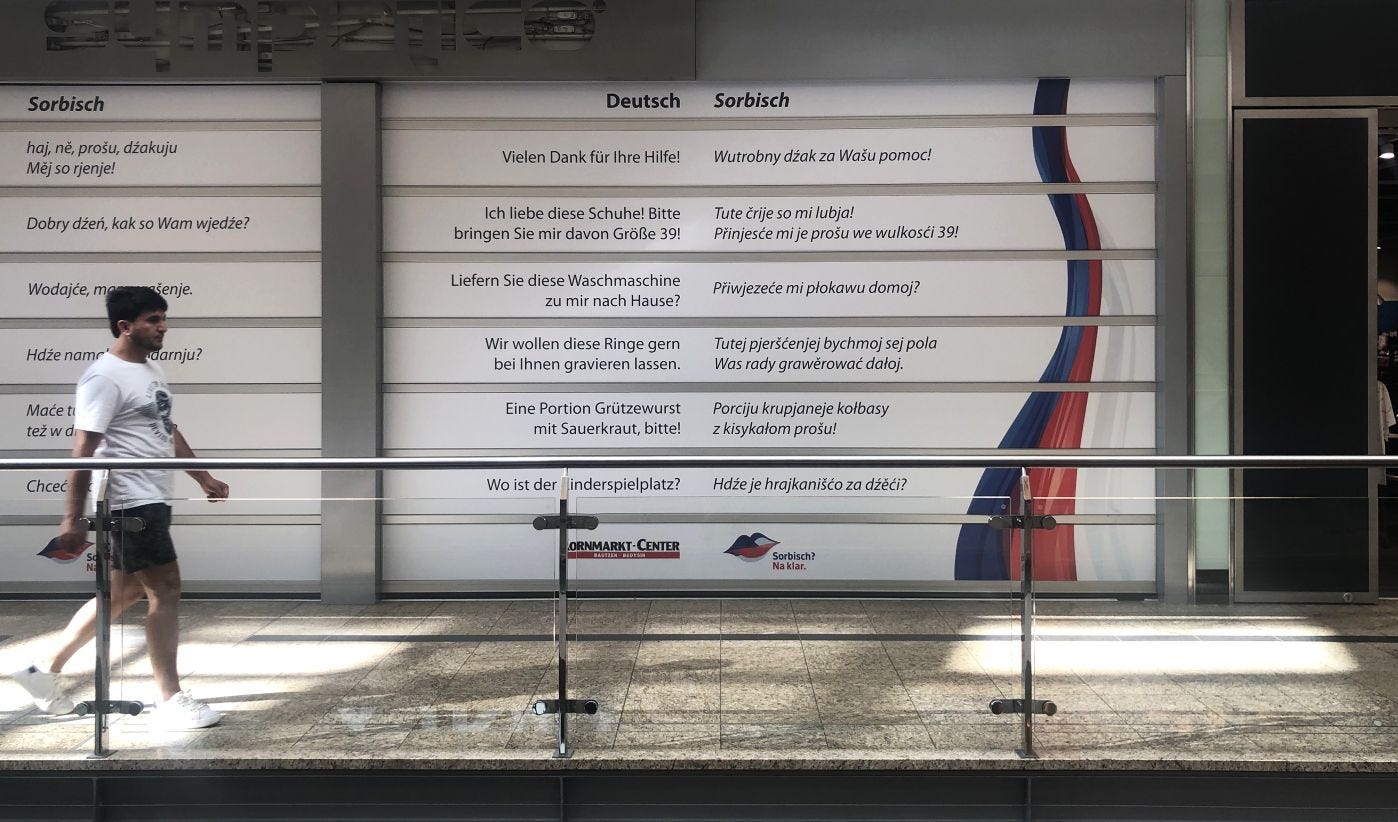 Mivel a szorb nyelvet mára pár óvodában, hat szorb általános iskolában és négy középiskolában, valamint a regionális-közszolgálati MDR heti párórás tévé- és rádióadását leszámítva csak a négy fal között beszélik, az veszélyeztetettnek számít, beszélői pedig a korral haladva, a számos vegyesházasságnak és a szorbok emiatti gyakori kettős identitásának köszönhetően német szavakat és nemzetközi szlenget is vegyítenek bele. Hogy ezt megállítsák, Bautzen frekventált pontjain nyelvtanfolyamokat reklámoznak, a környéken számos iskolában idegen nyelvként fel lehet venni a nyelvet – elvileg négyezer diák tanulja most a szorbot második nyelvkét –, és több helyütt, így például plázák vagy parkolóházak liftjei mellett német-szorb köztéri szótárokat is felraktak a falra az alapkifejezésekkel, hogy a várakozás közben ragadjon valami az emberekre a kisebbség nyelvéből.