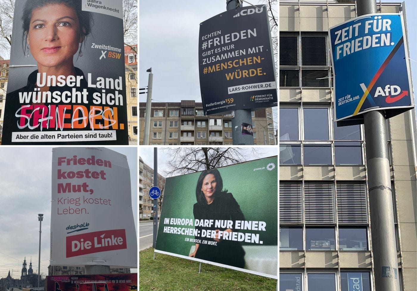 Reggel kimerészkedve a negyedből a belváros felé megjelenik már a jobboldal is, de csak plakátokon: a liberális FDP-n és a szociáldemokratákon kívül mindenki kiírta valamilyen formában, hogy fontos számára a béke. A belvárosban és a szocialista tömbök övezte, márkás boltokkal teli bevásárlóutcán, a Prager Straßén mindössze egy politikai aktivistát látni, egy szakállas hatvanast, aki letámasztotta a rozoga, a marxista Junge Welt napilap matricájával és szórólapjaival ellátott bringáját az utca szélére, hogy egy méretes szovjet zászlót lengetve árusítson egy kiáltványt, ami a békére való felhívásról szól. Épp egy biciklijén ülő idősebb, már őszülő bajszos, kockásinges-bőrdzsekis férfival diskurál, mint hallom, a fociról, de int, hogy lépjünk oda mi is.