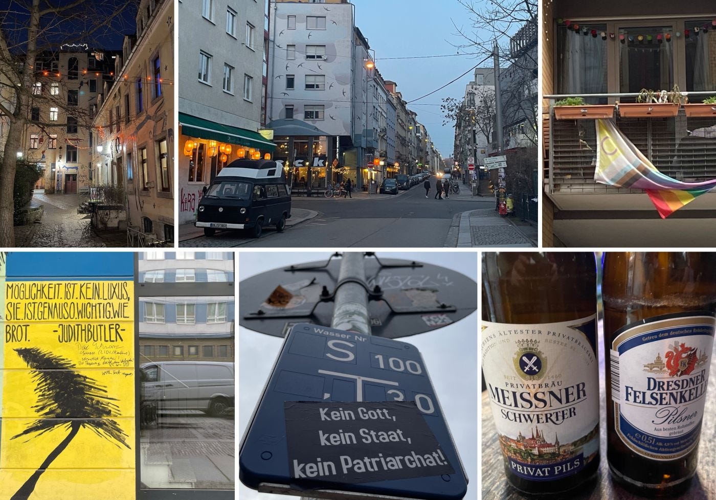 Drezda Äußere Neustadt nevű negyede Szászország egyik legbalosabb körzete, nemhogy a szélsőjobboldali AfD vagy a jobbos-liberális FDP plakátjait nem látni itt, de még a kereszténydemokrata CDU-ét sem, a szociáldemokrata SPD kevés reklámjára pedig válogatott szidalmakat firkáltak arról, hogy már csak a szocialista Linke jöhet szóba. Az egykoron tényleges művésznegyedként működő, ma már inkább kontrollált dzsentrifikáció alatt álló, kocsmákkal, szusibárokkal, kávézókkal és mindenféle éttermekkel teli Äußere Neustadt az egyik legizgalmasabb része az egykori NDK-nak.
