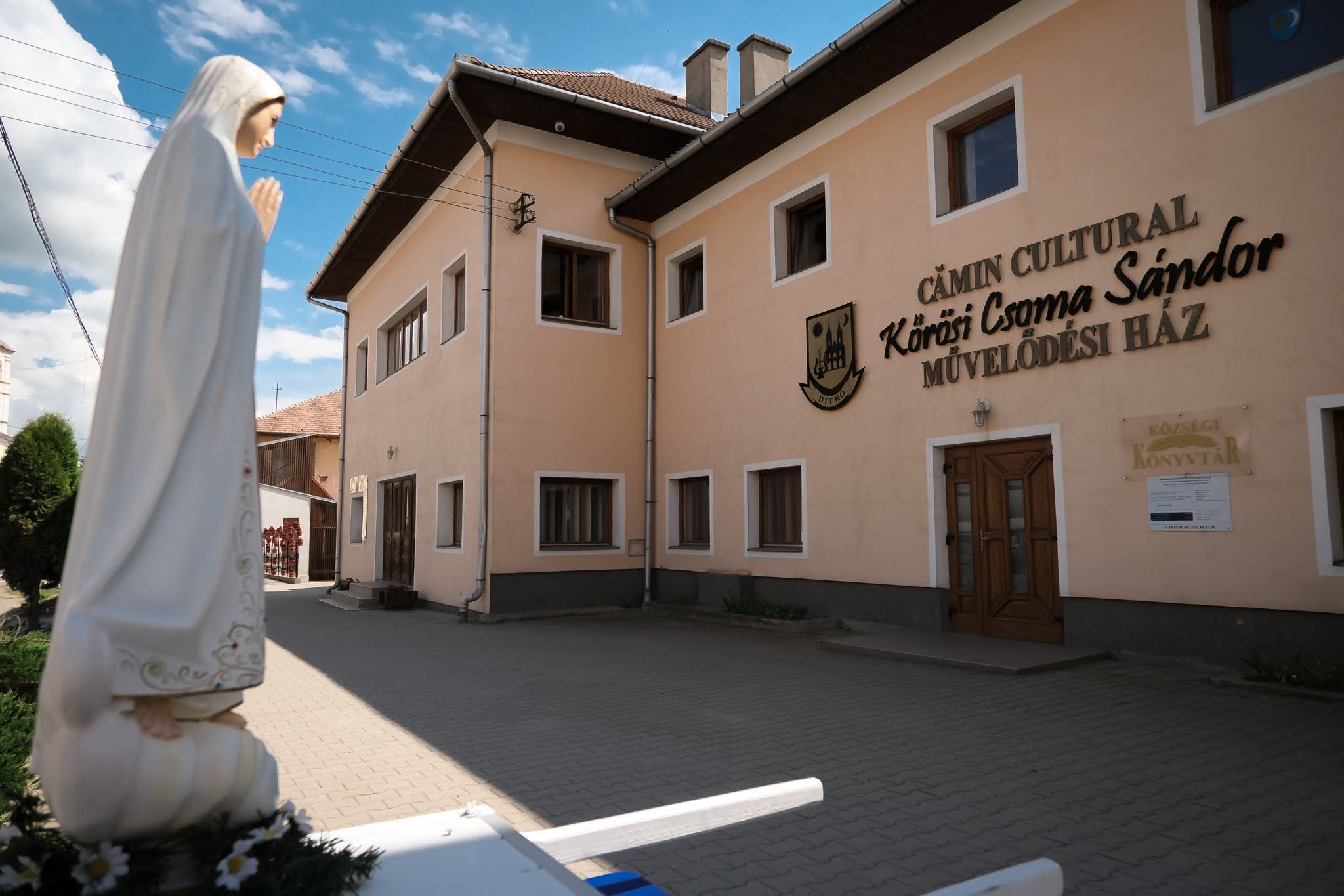 A Kőrösi Csoma Sándor Művelődési Ház előtt Mária-szobor is jelzi, hogy ezen a vidéken az emberek erkölcsi útmutatásért még templomba járnak mozi helyett, bűnbocsánatért meg a búcsúba, így aztán egy pillanatra elbizonytalanodom: lesz-e egyáltalán közönség? A rendkívül igényesen felújított művelődési ház előadótermében már a sajtó kitölti a székek negyedét. Szépen lassan nemcsak a pékséget tulajdonló házaspár és a polgármester érkezik meg, hanem a közönség is.