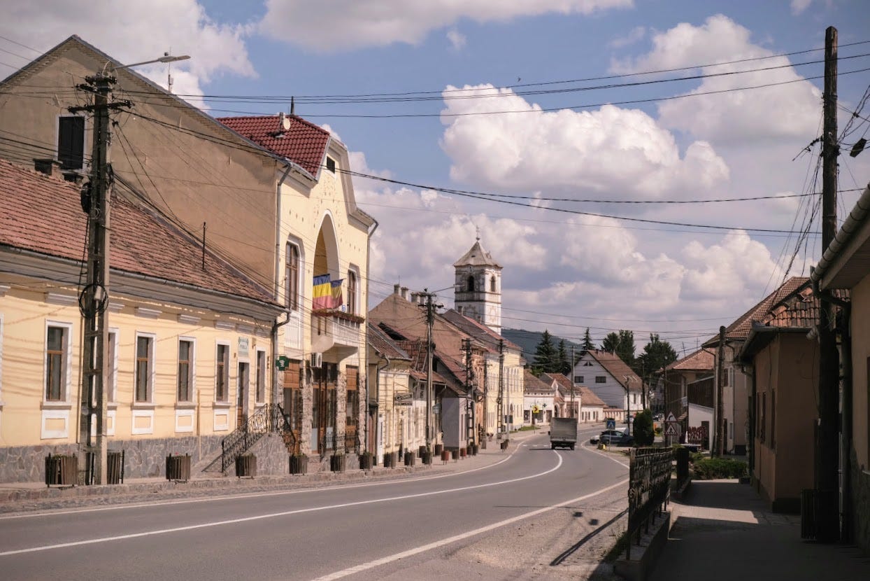 Ditrói utcakép az állam zászlajával. Fotó: Gergely Előd Gellért, 2022