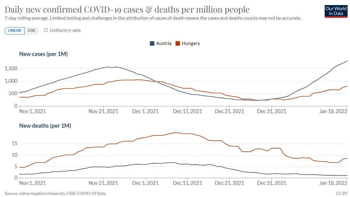 másrészt lehet a koronavírus omikron mutációjának kedvező adatait látva az igazolványosdi és a járvány lassú kivezetésének kezdetének látni, mondván Magyarországon eddig is csak koncertekre és fürdőkbe kérték azt, a populista Orbán-kormány csak nem akar kicseszni milliókkal választás előtt.