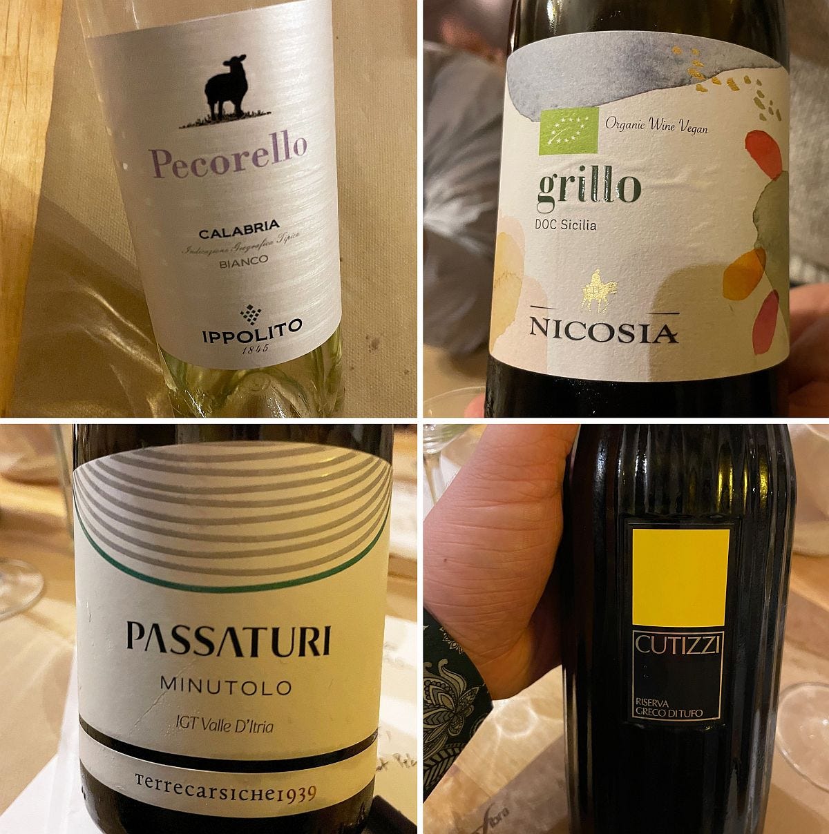 És akkor valamit a tudományoskodás közben kóstolt délolasz borokról is kellene írni, de minek, tudja mindenki, hogy jók egytől egyig, legyen szó akár a campaniai falanghináról, fianóról, greco di tufóról és coda di volpéről, a kalábriai grecóról és pecorellóról, a szicíliai grillóról, zibibbóról, abruzzói pecorinóról, passerináról, pugliai verdecáról és minutolóról. Kíváncsi leszek, melyiknek lesz először hazai bora.