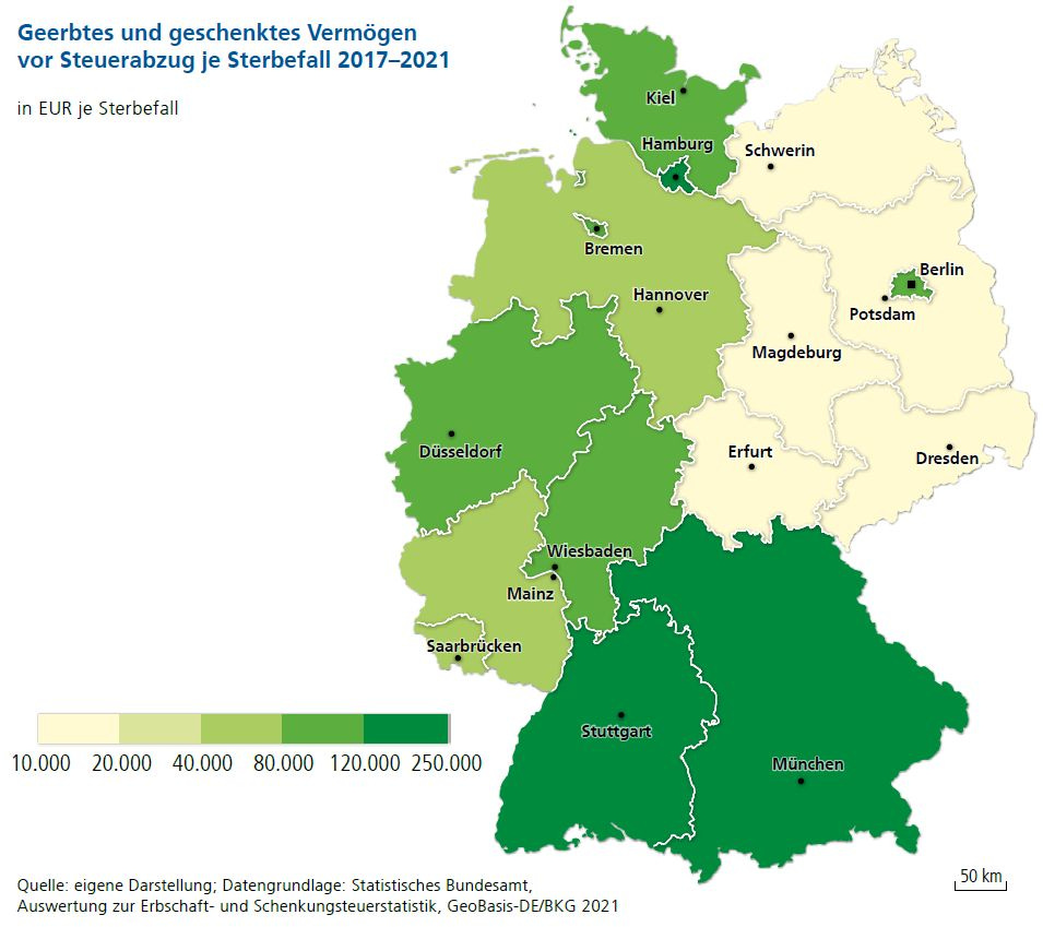 Nyugat-Németországban a középosztály dominál, míg keleten a kisemberek – nyugaton vannak megtakarítások, ingatlanvagyon, esetleg befektetnivaló tőke is, addig keleten annak örülnek, ha valamennyire jólfizető állást találnak. Egy átlagos nyugatnémet háztartás vagyona duplaakkora, mint egy átlagos keletnémeté – a német állam által beszedett örökösödési adónak mindössze 2%-a jön a keletnémet területekről (nem beleszámítva Berlint, az egy speciális eset).