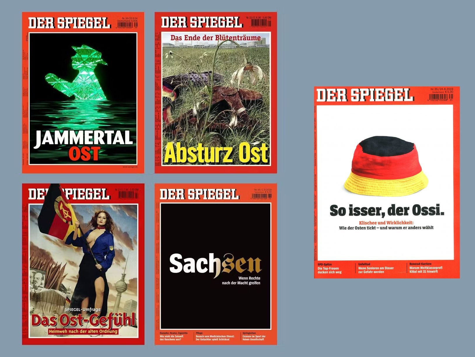 A nyugatnémet mentális térképen ugyanis ez a mai napig így van: míg egy bajorországi vagy hesseni riport bekerül az országos kiadásba, a keletről szóló tudósítások a lapokban vagy meg sem jelennek, vagy eldugják őket csak keleten megjelenő mellékletekben – mint a Die Zeit hetilap teszi, amely „Die Zeit im Osten” címmel külön kiadást jelentet meg Svájcban, Ausztriában és „keleten”, mintha utóbbi is külön ország volna a mai napig. Ha meg készülnek is ilyen cikkek, azok kevés kivétellel olyanok, mintha a külpolrovat készítené őket vagy épp Földes András látogatna meg egy afrikai menekülttábort, csak itt épp egy keletnémet kisvárosban az AfD ellen magányosan tüntető pék a téma. Rendszeres, hogy a keletnémetek kapcsán