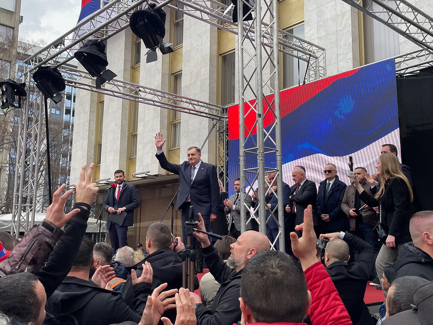 Mivel borítékolható volt, hogy szerdán úgyis elítélik, a szarajevói ügyészek és bírák muszlim vallását sűrűn emlegető Milorad Dodik már kedden elkezdett hangolni a külföld és mindenki ellen: a Republika Srpska központjába, Banja Lukába hívta a híveit, hogy úgymond őrt álljanak egészen szerdáig, az ítélethirdetésig az entitás szocreál stílusú, erősen felújításra szoruló parlamentje előtt. Ez azonban nem jött össze, a szervezők szerint 25 ezres, légifotók alapján jelentősen kisebb, főleg állami alkalmazottakból és párttagokból, azok rokonaiból álló hallgatóság Dodik beszédét követően rögtön elkezdett feloszlani, a többségnek még az ingyencsevap sem kellett, megindultak a buszok felé, hogy hazamehessen végre, hivatalosan azért, mert nem találtak mindenkinek szállást (holott csak a Booking.com-on 261 szállás volt aznap estére foglalható még kedd délután is, 20 euróért itt már fullos apartmant kapni).