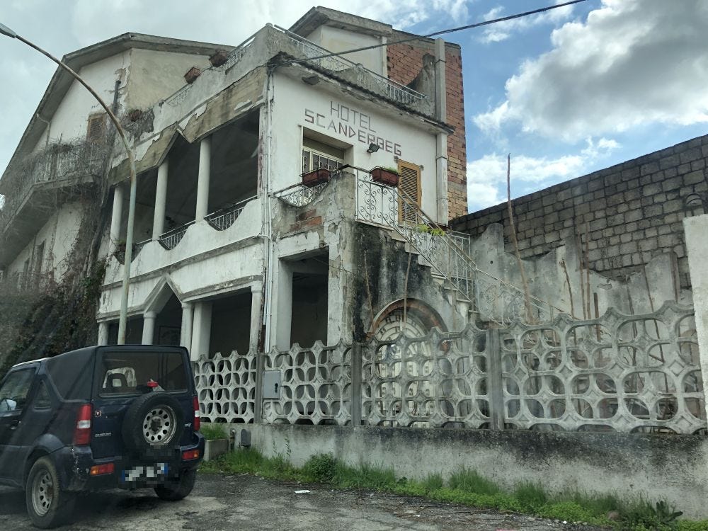 A városok messziről mesések, a természeti látnivalókhoz hasonlóan képeslapra kívánkoznak, sokadszorra az utcáikat járva viszont csak szomorú kurvaanyázásra vagyok képes: miért nem oszt rendesen vissza a maffia, miért nem csinál valamit Róma, hogy a fiatalok itt maradjanak, miért kellett a helyi egyetemet egy autópálya mellé rakni, hogy még véletlenül se töltse meg élettel Catanzaro belvárosát, miért csak szinte belföldi járatok repülnek Lamezia Termébe. Itt sétálni nem olyan, mint amikor valaki látja a romokat, de egyben a potenciált is egy Brassóban vagy Temesváron: itt nem egy ígéretes fejlődési potenciállal rendelkező régió, hanem egy hosszú és bővített mondat végére kitett pont az, amit lát. Kalábria hegyekre épült kisvárosaiba már csak szent őrültek fektetnek pénzt és ötleteket. Itt minden rajtuk múlik.