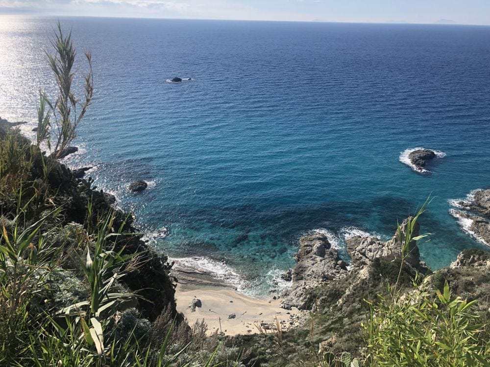 Kalábria partjait két tenger mossa, északról a Tirrén-, délen a Jón-. Noha a liguriai Cinque Terréhez és a campaniai Amalfihoz fogható turistás gigalátványossággal nem tud szolgálni, olyan kincsek bújnak meg szinte észrevétlenül, mint a világ talán legkékebb tengervize által kivájt Arco Magno sziklaboltív, a hagymájáról híres, sziklákra épült Tropea alatti szigetre felhúzott templom és körülötte a strand, Capo Vaticanonak a Szardíniával vetekedő homokos partjai, vagy épp Caulonia, ahol görög templomromok között strandolhatunk, míg fel nem bukkan egy Belarus-traktor, hogy bevontasson a tengerbe egy csónakot (megtörtént eset). És a tengerparti városok! Az Odüsszeiából ismert Scilla, a tartufóról (mármint a nem dermedt belsejű fagyi) híres Pizzo, a kardhalhalászok központja, Bagnara Calabra!
