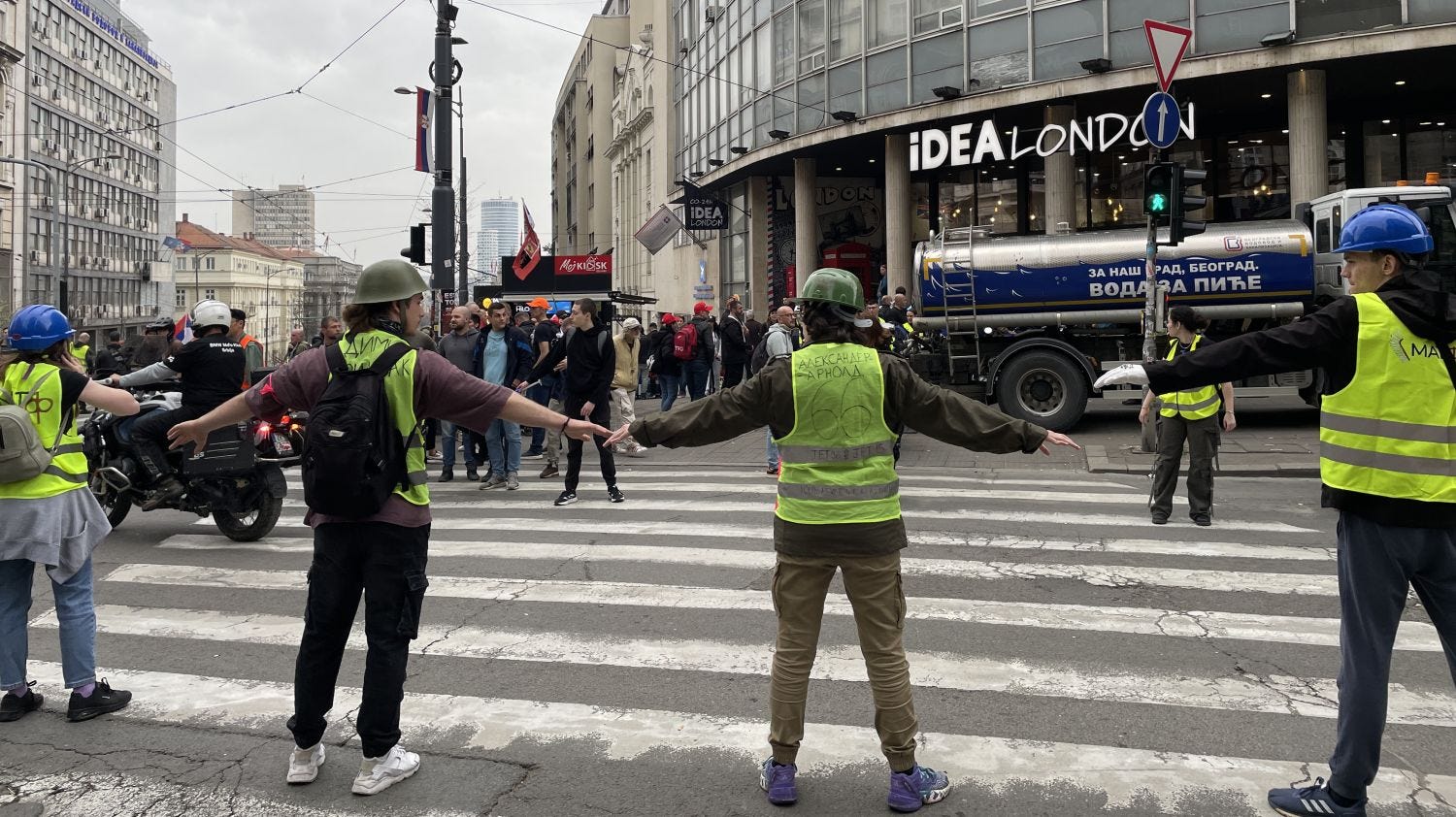 A szerbiai tüntetések főszereplői a sárgamellényes egyetemista szervezők: nemcsak sakkjátszmát folytatnak Aleksandar Vučić elnökkel, miután az ő követeléseikről szól hónapok óta az ottani közélet, de emellett ők szervezik, jelentik be és sajtózzák a tüntetéseket, építik fel a rendőrségi útlezárásokat követően a kordonokat, biztosítják a demonstrációkat, terelik a tömeget, figyelnek az esetleges provokációkra, mindezt tenyerükön szüleik vastag alkoholos filccel írt telefonszámával és a vércsoportjukkal.
